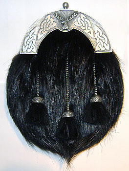 Dress sporrans > Celtic Stag crossed/straight faux fur - black - Vegetarian Sporrans - Vegan animal free leather sporrans and belts