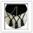 Semi dress sporran with white faux fur and black hand woven tassels The sporran is made with lorica and faux fur The lock is availble in either an antique silver or antique brass finish.